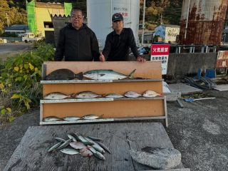2025年11月29日 大阪 久保氏 ブリ 95㎝ ヒラメ 60㎝ 大アジ、中アジ 25〜35㎝ 15匹 シオ 40〜50㎝ 3匹 タイ 30〜35㎝ 4匹 アラハダ (センカイカセ) 共有:シェアFacebook